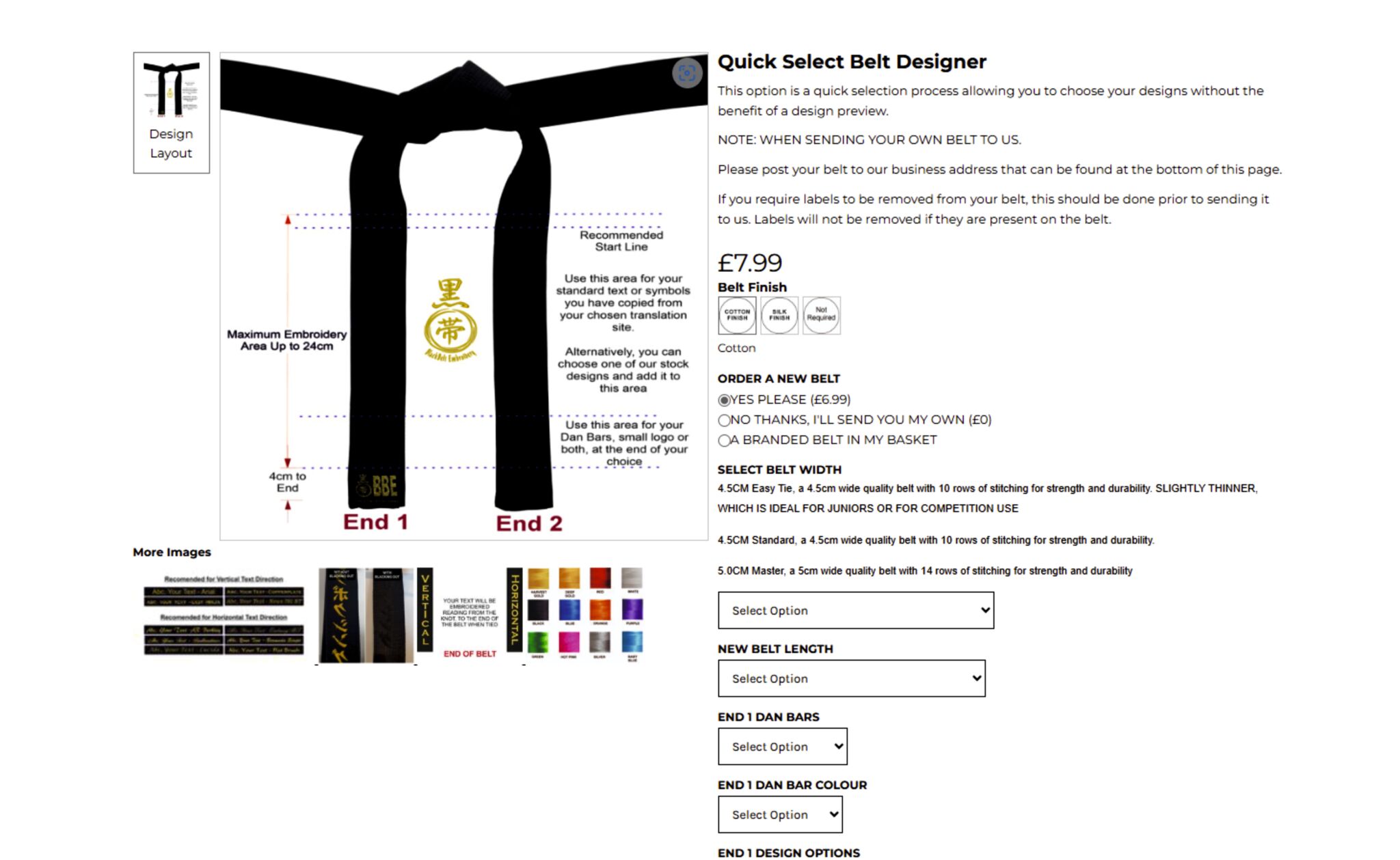 We are the UK's No.1 Black Belt Embroidery Service because we pride ourselves on giving our customers a specialist service that cannot be matched elsewhere. With over 15 years’ experience in this business, we have learnt that our customers’ demands are never the same, so we work closley with you to acheive the product you can be proud of.